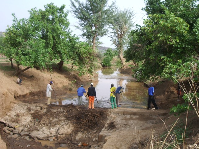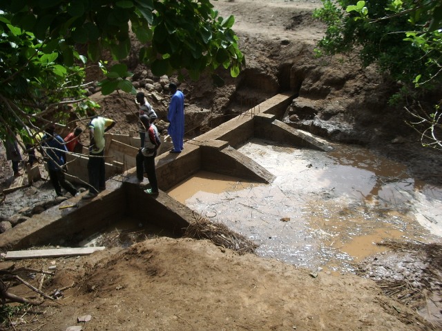 Abbiamo inoltre riparato 6 pozzi manuali. Abbiamo costruito una diga per la formazione di un bacino di ritenuta delle acque pluviali che vengono utilizzate per l’abbeveraggio del bestiame e per le coltivazioni.A monte della diga si crea,durante la stagione delle piogge ( Giugno-Ottobre) un bacino di ragguardevoli dimensioni che contribuisce anche,attraverso una capillare infiltrazione nel sottosuolo,ad incrementare la falda idrica sotterranea,cui attingono i pozzi,sia perforati,sia scavati.